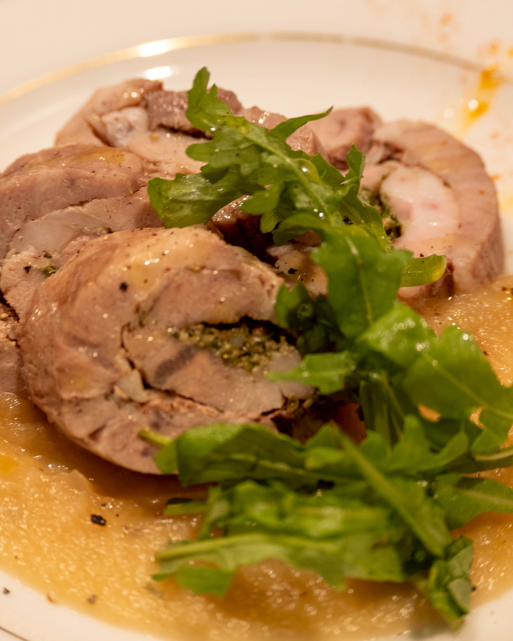豚肉のポルケッタと焼きリンゴのソース