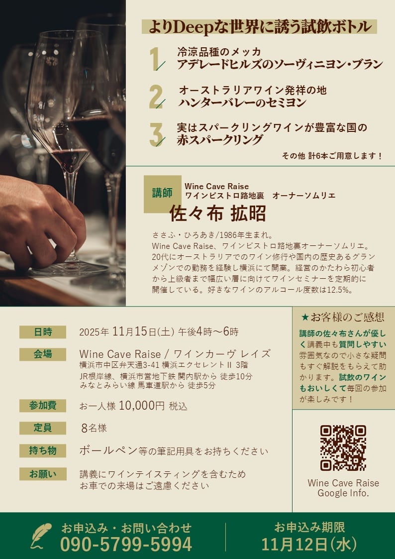 ・講師はオーストラリア現地で直接ワイン製造に携わったオーナーソムリエ